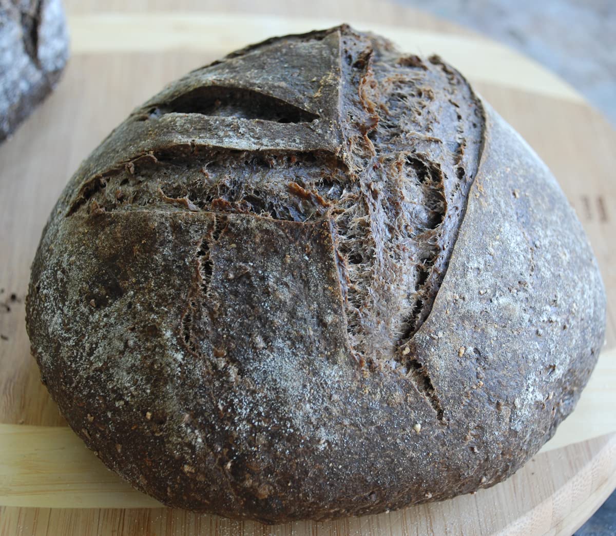 - Fed organic bread flour. For black bread use dark rye flour. Different flours will result in different shades of the starter and of the bread as pictured